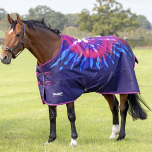 With a ShireTexยฎ 600 Denier ripstop outer that is waterproof and breathable, this turnout features double buckle chest closures, adjustable cross surcingles, tail flap, and tail strap. ShireTex is a tough and durable fabric coated with specially formulated hydrophilic coating designed to attract excess sweat and moisture. The difference in air temperature between the inside and outside of the blanket draws sweat to the outer of the blanket where it dissipates into the atmosphere.