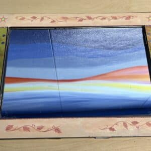 Framed mirror, decorated in watercolor horse designs, with hinged doors to cover the mirror.