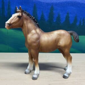 This adorable Breyer foal is alabaster white, with a grey mane, tail, and knees. According to the ‘Identify Your Breyer’ website, this version of the Scratching Foal was from 1991, and was originally part of the “Fun Foal Set” box set that was featured in JCPenney’s Holiday Catalogue. About 5,000 of this model were made.