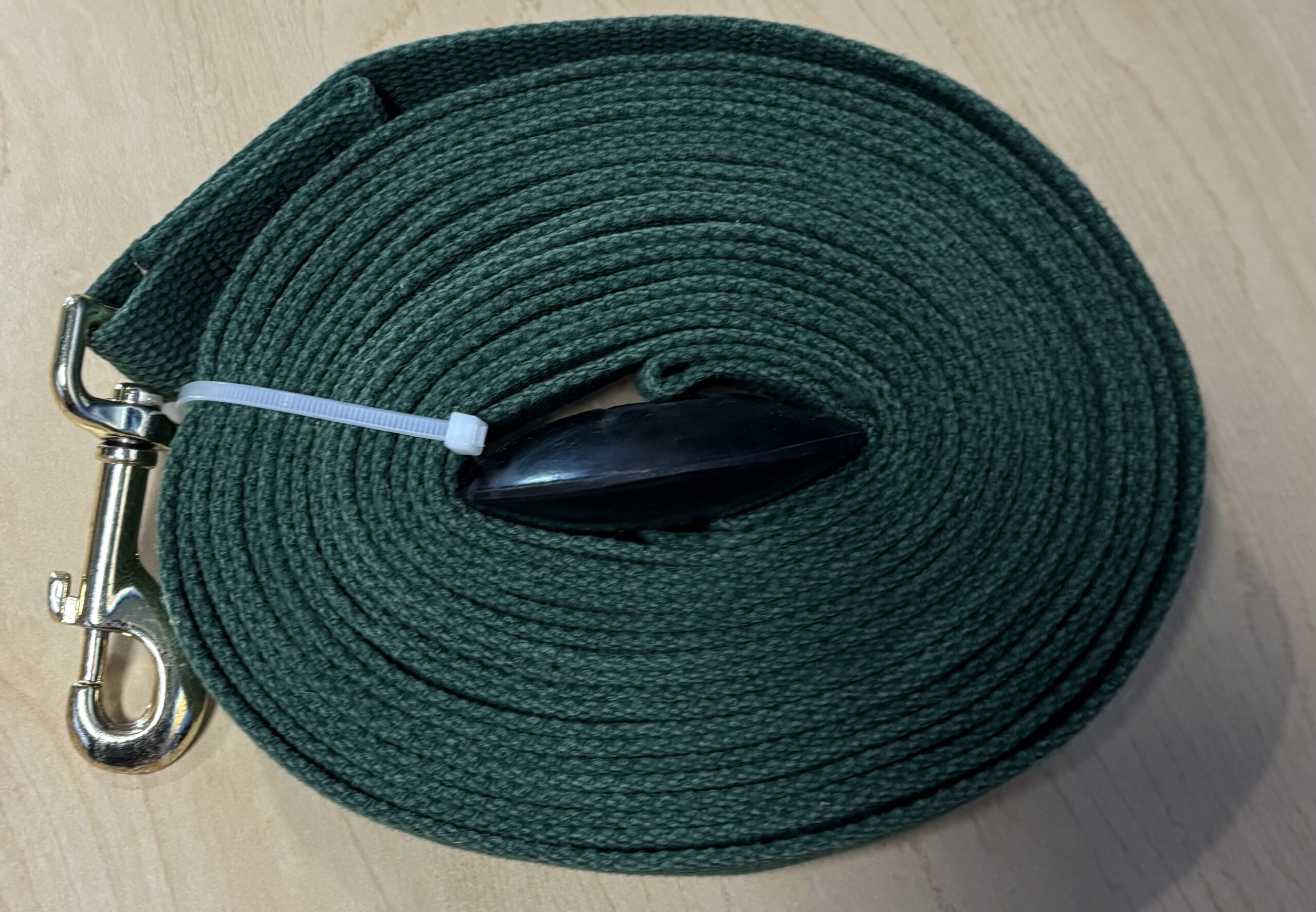 This green lunge line has a brass snap to connect and a rubber stopper. This line measures Read More