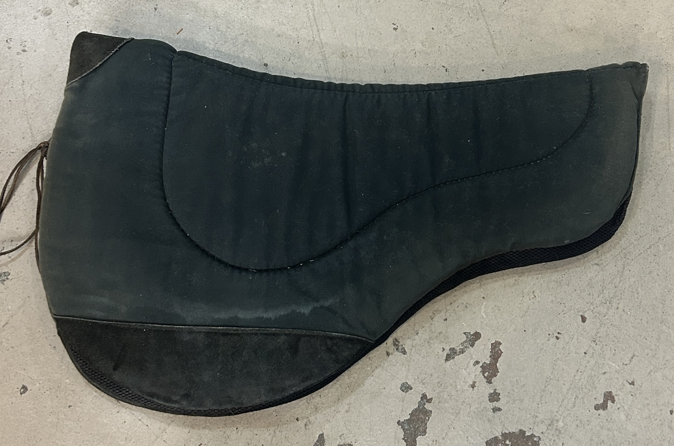 This is an older Diamond Wool pad with a canvas top and a woven bottom. Suede wear pads along the withers and on the bottom where the girth goes.