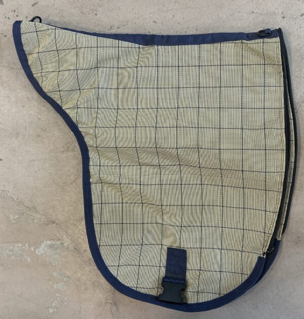 Lined (not padded) mesh English saddle carry case. Bottom connector strap. Missing carry strap, but there are Read More