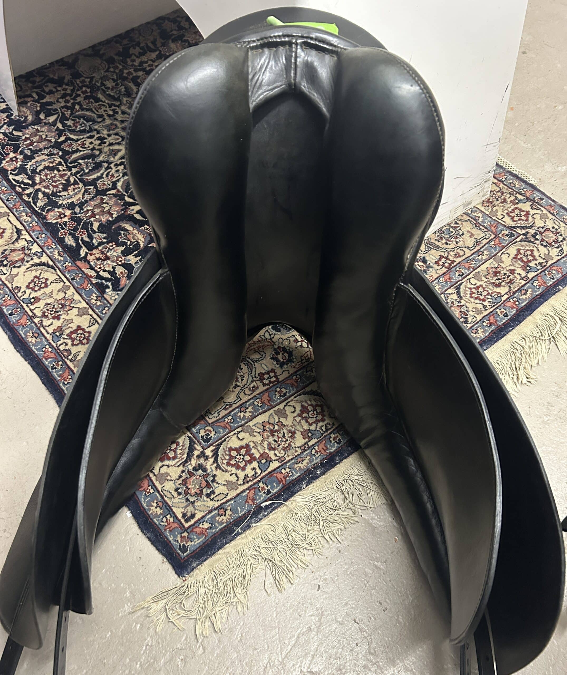 - Specifically developed for modern dressage with a deep seat and large outer knee/thigh blocks for security. It is known to fit a variety of horses, particularly those with a flatter back.