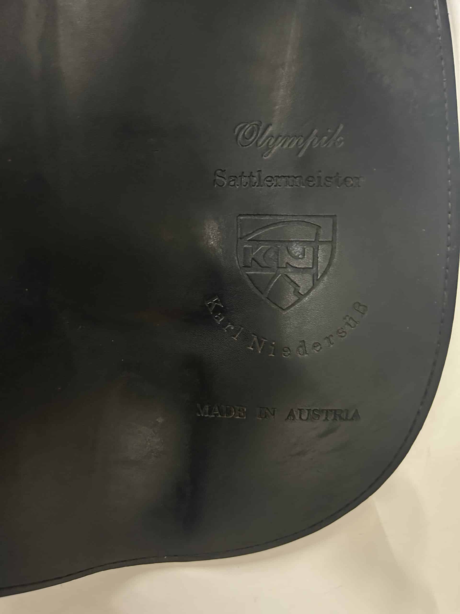 The Karl Niedersuss Olympik is a high-quality Austrian-made dressage saddle, renowned for its use by the Spanish Riding School. It features a deep seat, moderate-to-large thigh blocks, wool-flocked panels, and an injection-molded tree, designed for comfort and support.