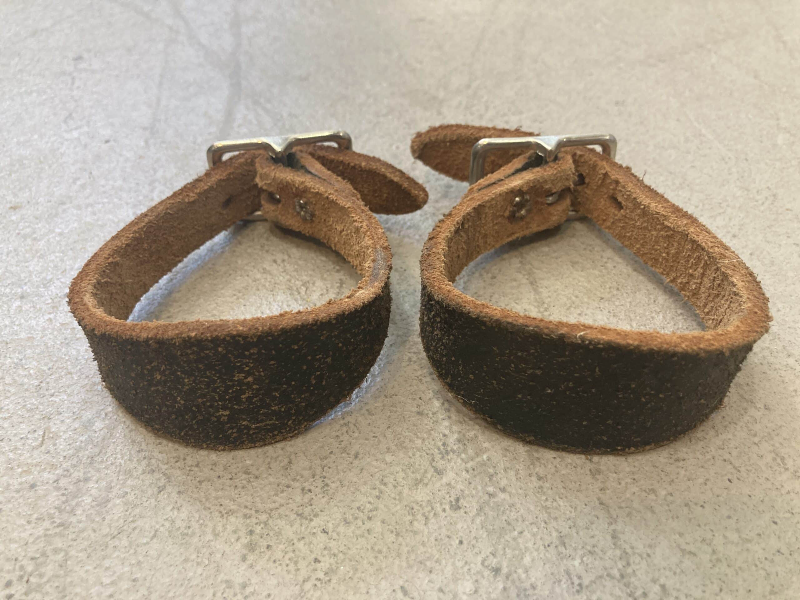 Help keep stirrup leathers in place with leather hobbles with nickel plated hardware.