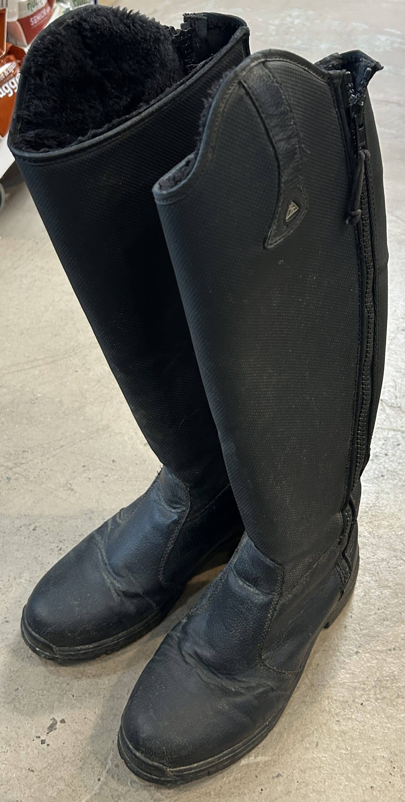The Mountain HorseRimfrost RiderTall Boot is the original versatile boot that started it all. Heat-insulating Thermolite® lining will keep feet and legs warm while the waterproof construction keeps feet dry up to the start of the zipper. Sturdy and durable YKK® zipper for easy entry and exit. Built in steel shank for increased stability. Fabric: Duralon™/Extensia. Insulation: 200g Thermolite®