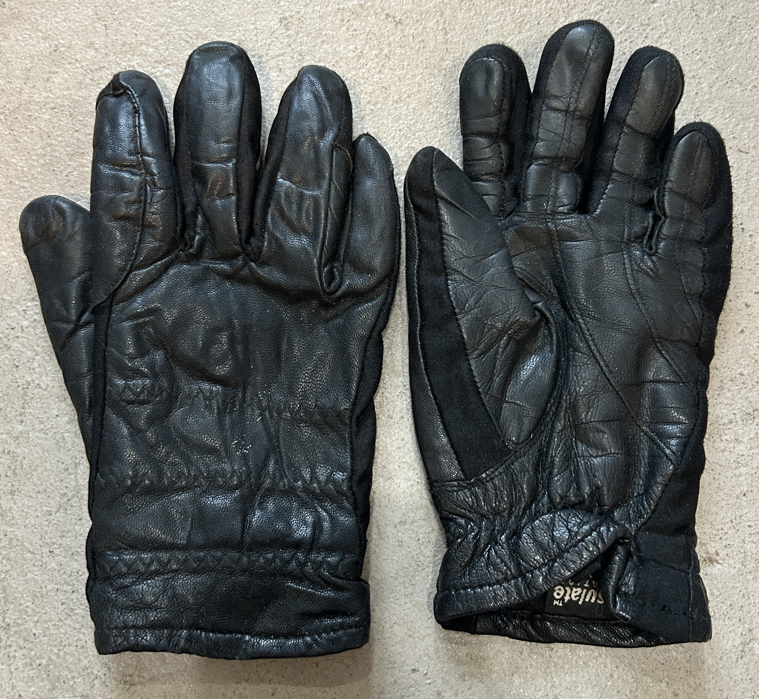 Black leather and Thinsulate (40 gram) insulated gloves to keep your hands warm and toasty while riding or showing; Has stretchy side panels for flexibility and comfort.