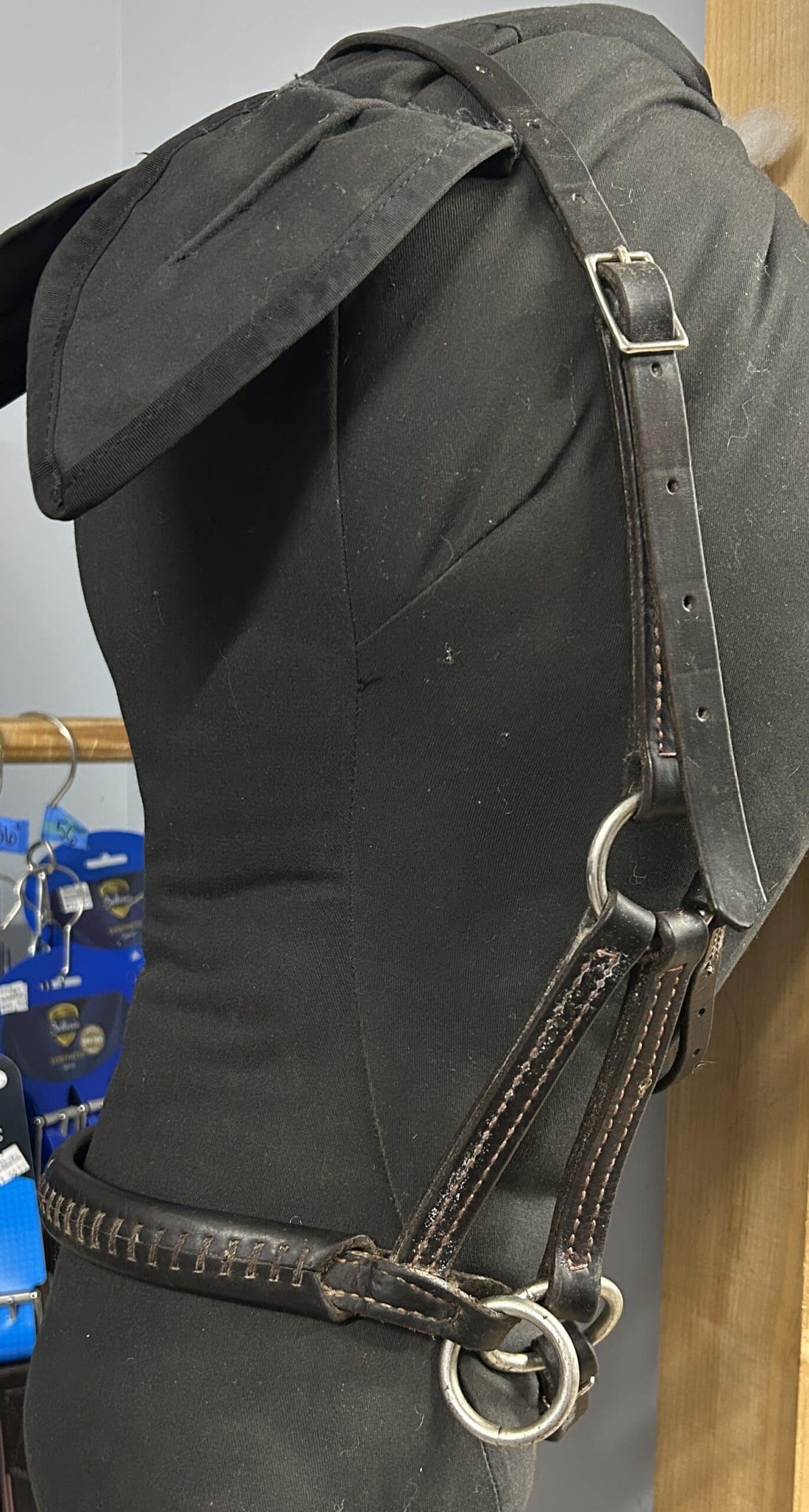The Lindell is custom made for Tellington TTouch® Training and named after Linda Tellington-Jones. We use it to start young horses and with horses who are sensitive in the mouth, overbent and/or for riders who have a tendency to balance off their hands. The Lindell buckles under the jowl to keep the nosepiece and cheek straps from slipping.