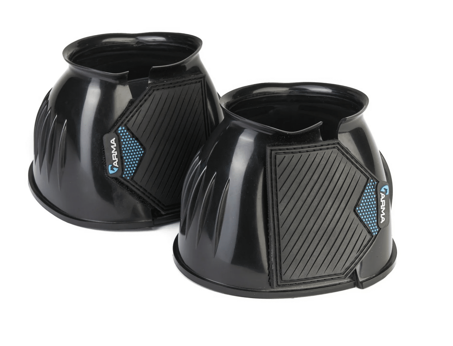 Ideal for schooling, exercise and turnout. Durable over reach boots in bright glossy colours. The flexible material deflects blows to protect the heel bulb. Easy grip double sided touch close straps secure the boot with reassurance. Attractive wide rubber straps are finished with the ARMA logo.