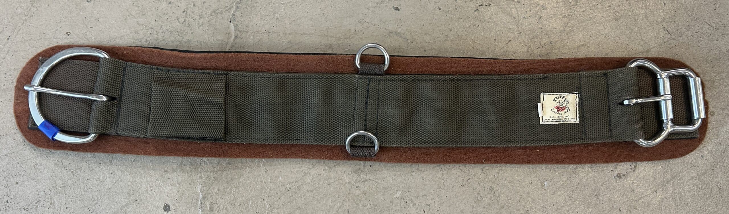 Neoprene girth with removable webbing and stainless steel buckles so each part can be cared for separately.