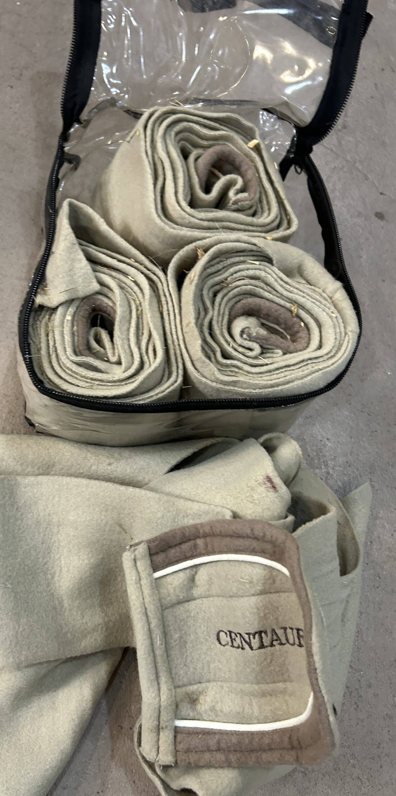 Fleece polo wraps with velcro ends.