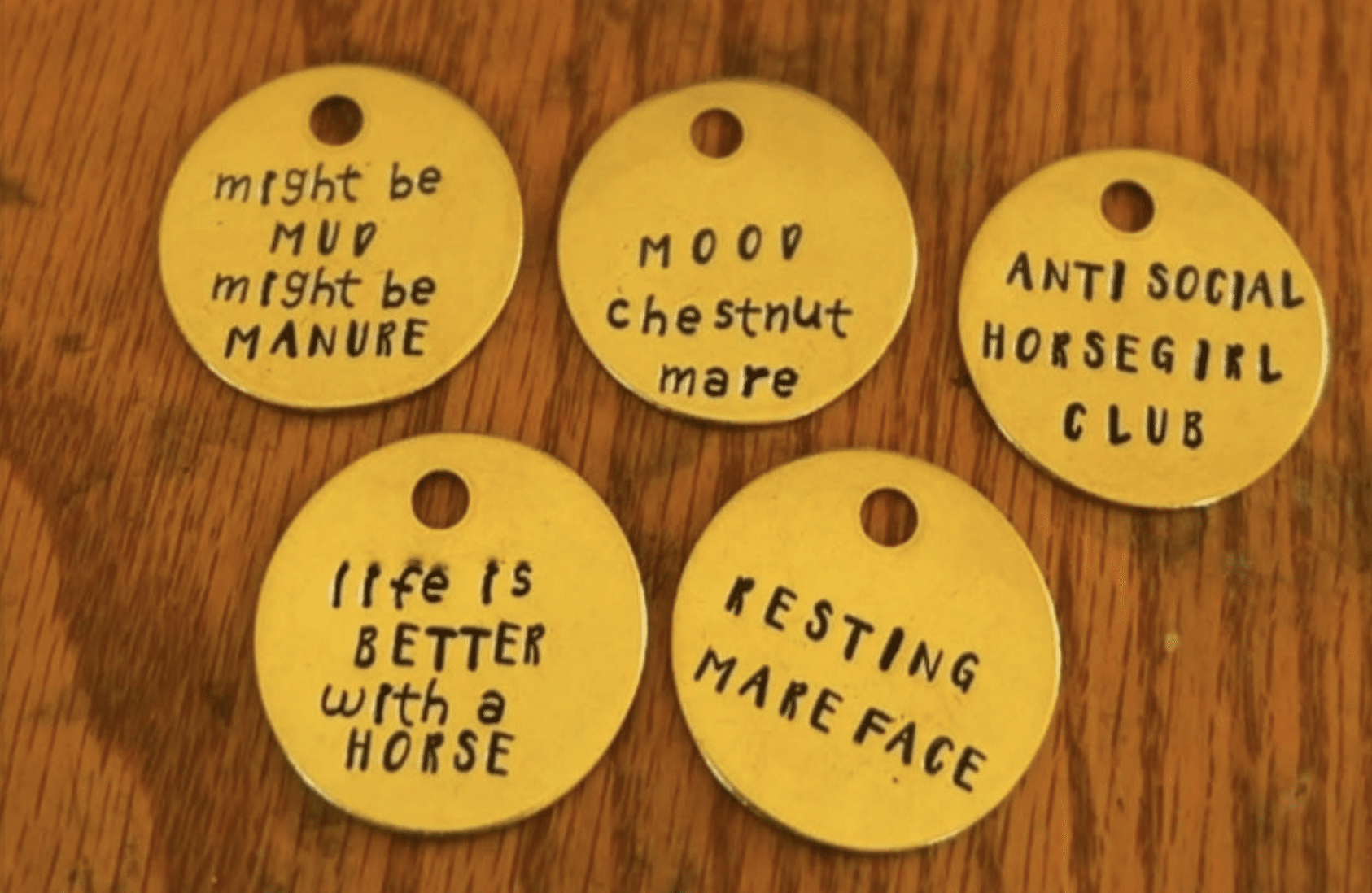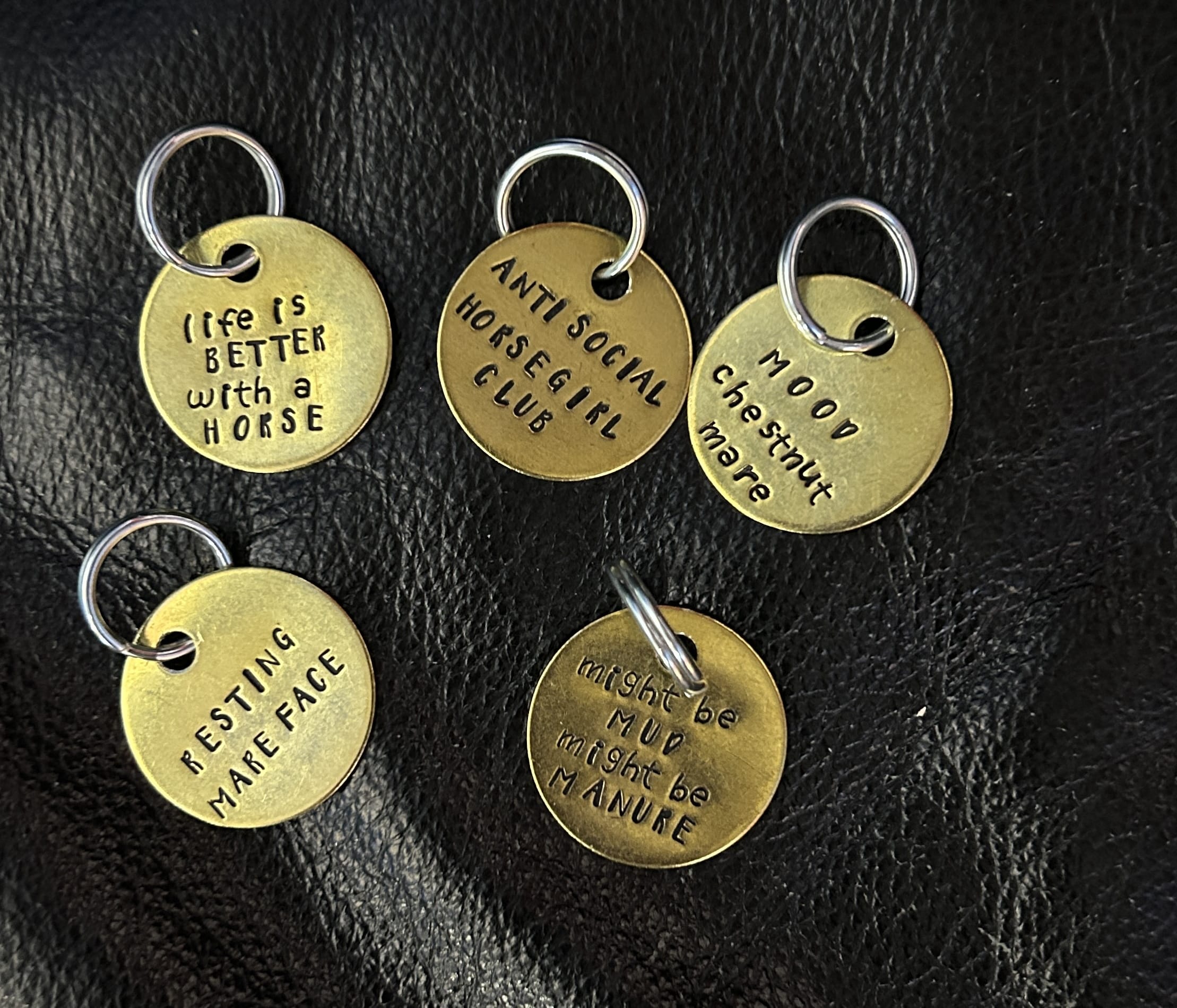 Horsing around is always better done with a sense of humor! These great keychain Equine sayings are stamped brass sourced in the USA, and made by a small business in Canada.