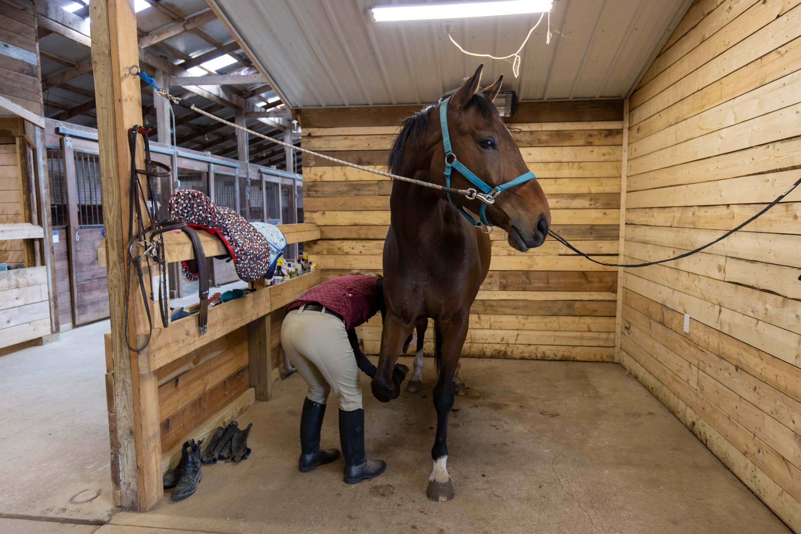Horses are herd animals and thrive on social interaction. If possible, arrange for your horse to spend time near companions, even if separated by safe fencing or stall bars. Horses that can see, hear, and smell each other are generally more relaxed and content. If your barn allows it, turn horses out together in small, compatible groups when conditions permit.